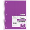 Mead 05222 1-Subject Wireless Notebook – 80 Sheets – Ruled Margin – 8″ x 10 1/2″ – White Paper – Green, Blue, Red, Light Blue Cover – Perforated – 1 Each