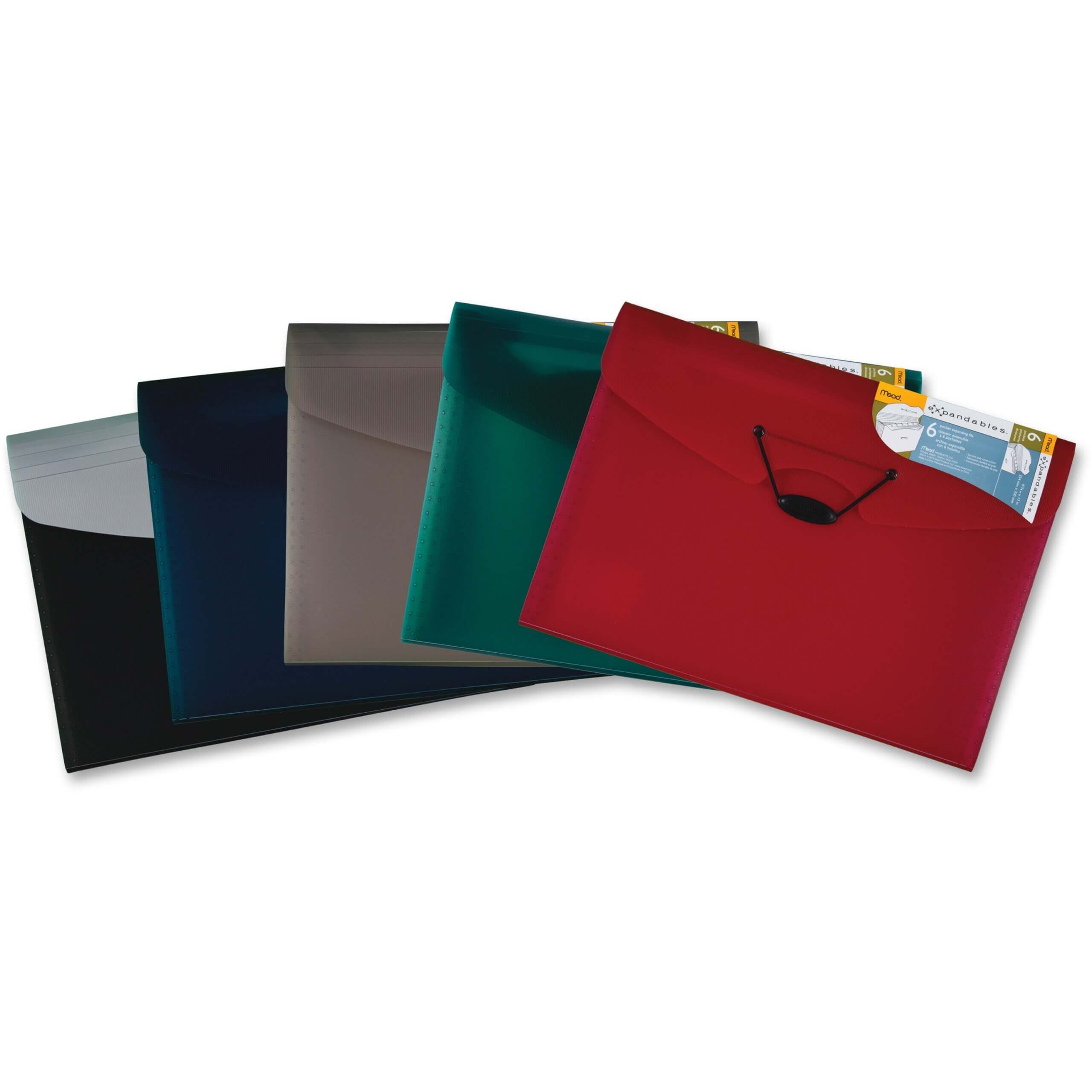 Durable file features six pockets and tabbed dividers with labels to help you stay organized. Expandable design accommodates growing files and projects. Strong plastic material and bungee closure keep your items together and secure. File holds both letter-size and legal-size papers.