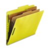 Eco-friendly classification folders are durable and made for subdividing large, bulky legal-size files. 2″ fasteners are embedded on the front and back panels as well as the divider, expand for a 2″ capacity and keep papers secure and in order. Covers are made of 25 point stock and have 2/5-cut right of center tabs. The dividers are made of 20 point stock and have 1/3-cut tabs. Top tab folders are made with recycled material.