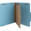 Eco-friendly classification folders are durable and made for subdividing large, bulky letter-size files. 2″ fasteners are embedded on the front and back panels as well as the divider, expand for a 2″ capacity and keep papers secure and in order. Covers are made of 25 point stock and have 2/5-cut right of center tabs. The dividers are made of 20 point stock and have 1/3-cut tabs. Top tab folders are made with recycled material.