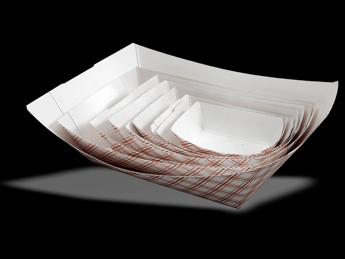 M9260181 – Food Tray 6oz Red Checkered Paper Clay Coated 4/250 cs