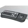 Deluxe keyboard drawer moves keyboard and mouse off the desktop to save work space. Three height adjustments suit your preferred work position and place drawer 2-1/8″ , 2-1/2″ or 1-3/4″ below the track. Mouse tray mounts to right or left side of the keyboard tray or stows underneath when not in use. Soothing, memory foam wrist supports with Microban antimicrobial protection stay cleaner and place hands/wrists in neutral position. Ball-bearing glide tracks ensure smooth drawer movement. Drawer is easy to install and adjust and fits standard and ergonomic keyboards. Travel Glide track is 10″ long.