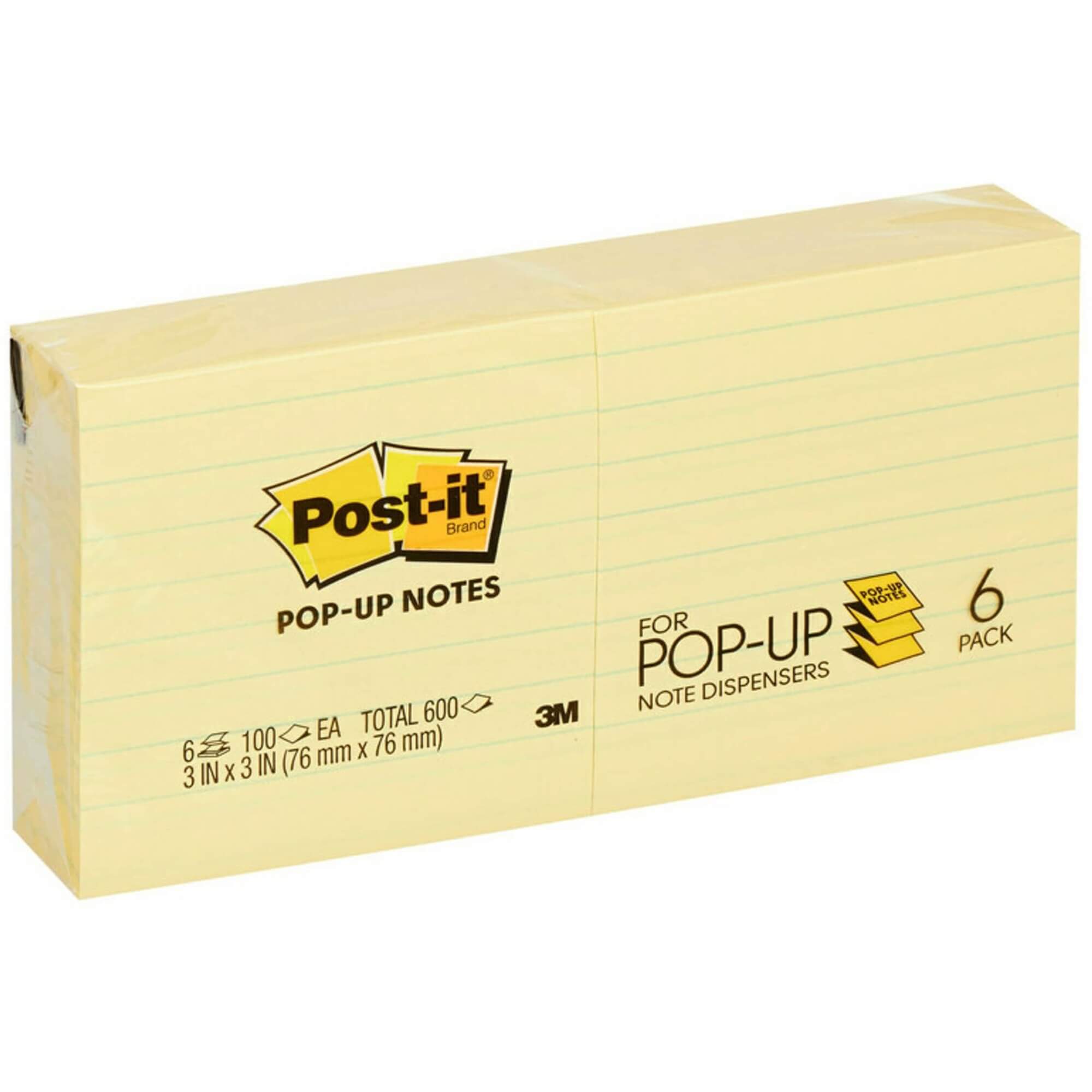 Post-it Pop-up Refill Notes are designed for use in Post-it Pop-up Note Dispensers (sold separately). Self-adhesive notes offer the convenience of grabbing just one note, with just one hand. The accordion-style notes pop up one at a time from a specially designed Pop-up dispenser (sold separately), keeping the notes at your fingertips. Notes are ruled so you can make neater notes. Repositionable adhesive won’t mark paper and other surfaces. The paper in Post-it Notes is sourced from certified, renewable and responsibly managed forests. Each pad contains 100 sheets.