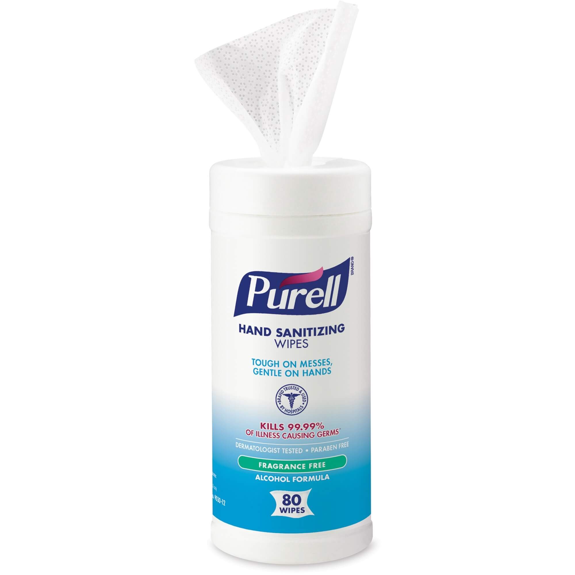 Sanitizing wipes with moisturizers are equipped with the PURELL Instant Hand Sanitizer that kills 99.99 percent of most common germs that may make you sick. Antiseptic hand sanitizer helps prevent cross-contamination to reduce the risk of infections. Fragrance-free, dye-free formula contains Vitamin A and E and leaves no stickiness or residue on hands. The nonlinting, durable, textured wipe removes light soils and dirt from hands. Dermatologist-tested wipes are hypoallergenic and nonirritating. Alcohol formulation wipes meet FDA requirements for Food Code Compliant.