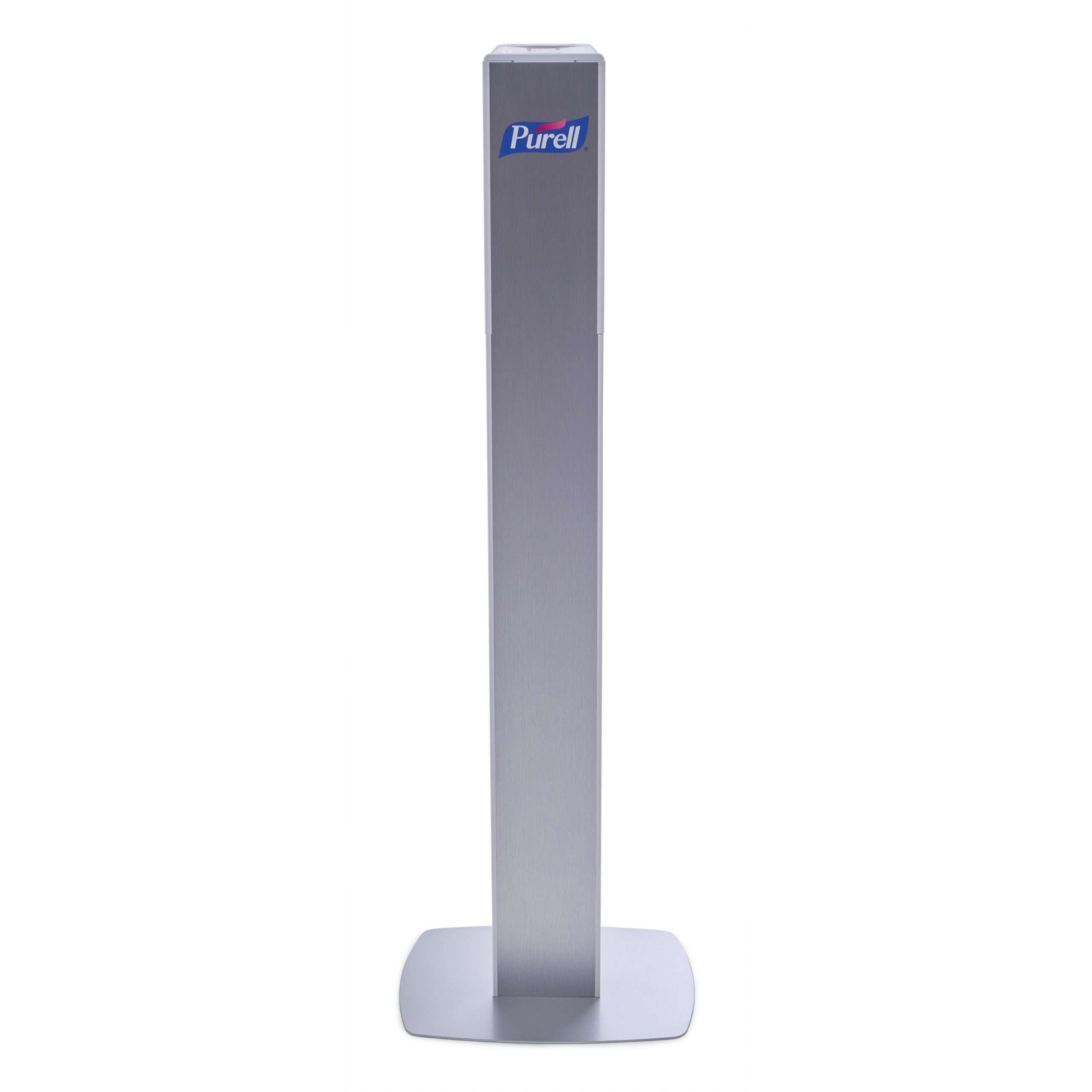 Elegant stand helps provide access to PURELL Hand Sanitizer anywhere. May be personalized with your message on the front and back of the stand. Low profile baseplate designed to maximize stability. Lightweight and easily moved when cleaning the facility. Silver baseplate hides dirt and always looks good. Accessorize with the Small PURELL® MESSENGER™ Stand Signs or the PURELL® MESSENGER™ Floor Stand Hygiene Bracket. Uses PURELL® ES8 1200mL Hand Sanitizer refills. SANITARY SEALED™ PET refill bottle with the tear-off collar for easy recyclability. Reliability Guarantee.