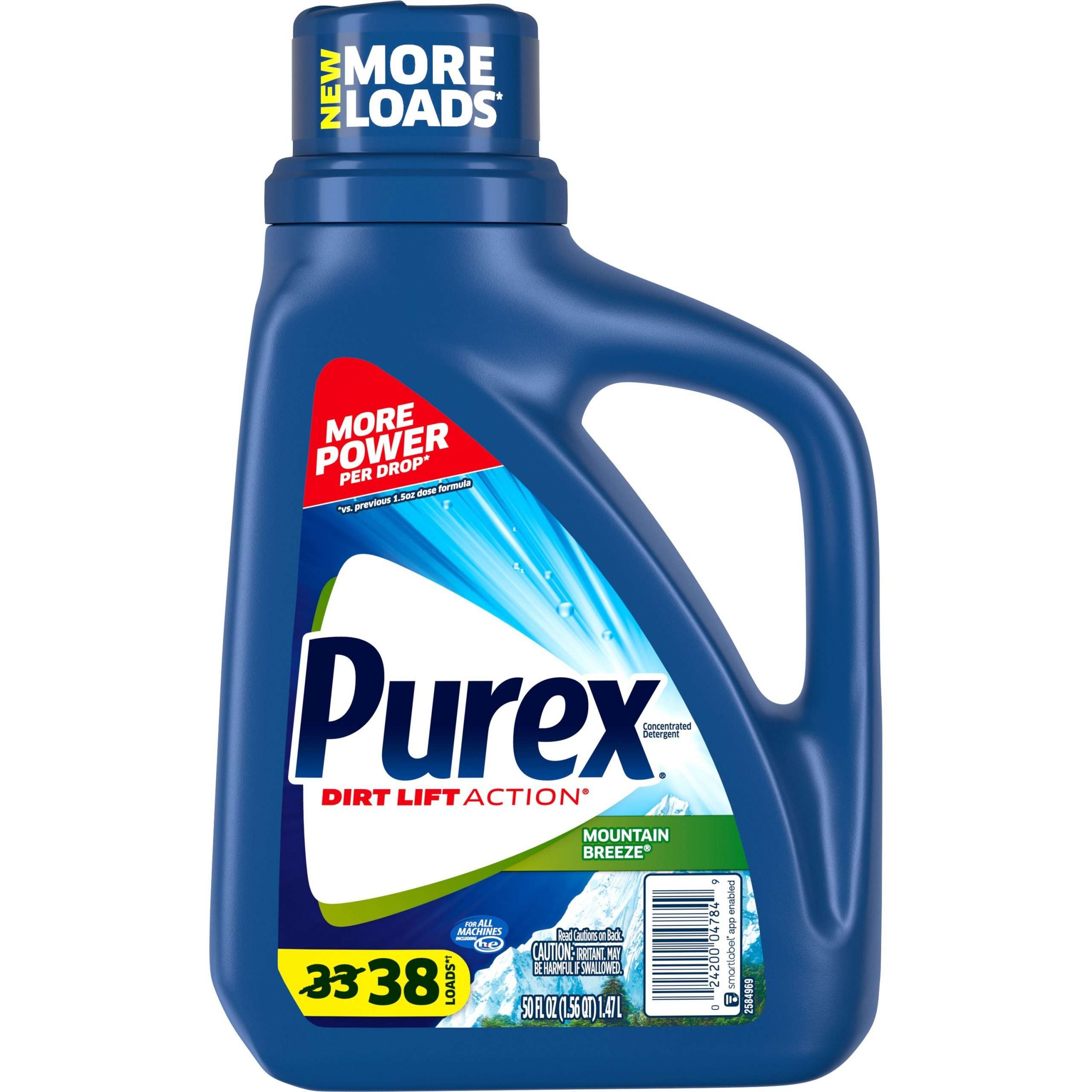 Heighten your senses with the refreshing, outdoor scent of crisp mountain air and springtime floral blooms found in this liquid laundry detergent. It is ideal for everyday use, penetrating deep down into fabric fibers, removing ground in dirt and stains. Purex Liquid Detergent is specially formulated with stain-fighting ingredients so clothes and linens are always fresh and clean. Concentrated detergent yields 38 loads.